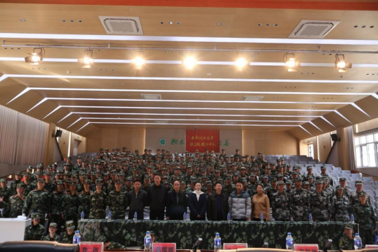 仪式中,保卫处消防科科长李龄劲老师宣读了授衔命令。台上领导与老师依次为大三主官、大二干部代表及新队员代表郑重佩戴领章。领章轻轻落在肩头,既象征着荣誉,更承载着沉甸甸的责任。授衔仪式结束后,大三主官杨志强组织安防中队全体成员进行宣誓。“平安西林,防患未然;忠于职守,永不背叛”,这洪亮而坚定的誓言,彰显了队员们守护西林的坚定决心。