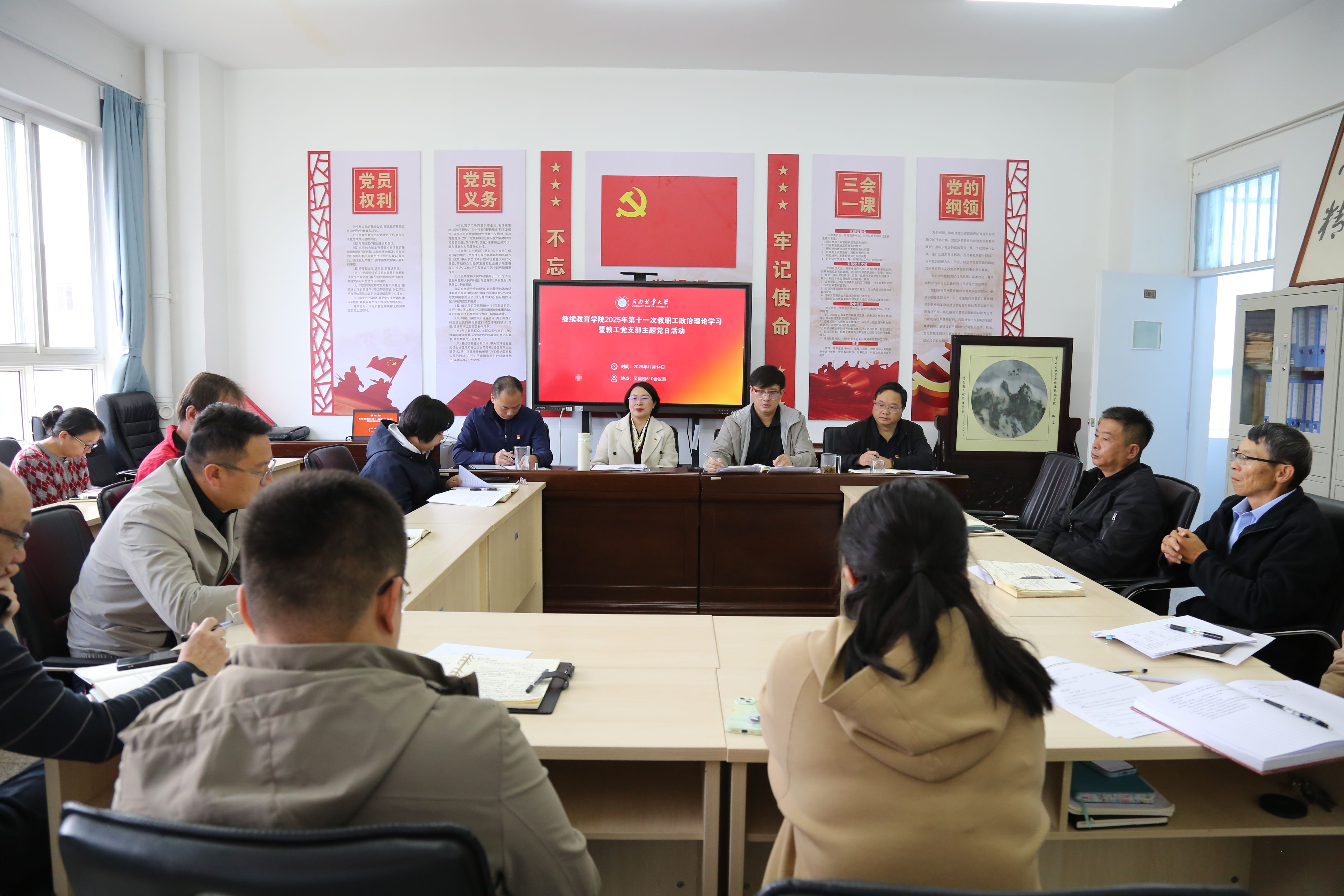 11月14日,继续教育学院开展教职工政治理论学习暨教工党支部主题党日活动,专题学习贯彻党的二十届四中全会精神。学院党总支书记王晓鹏主持会议。