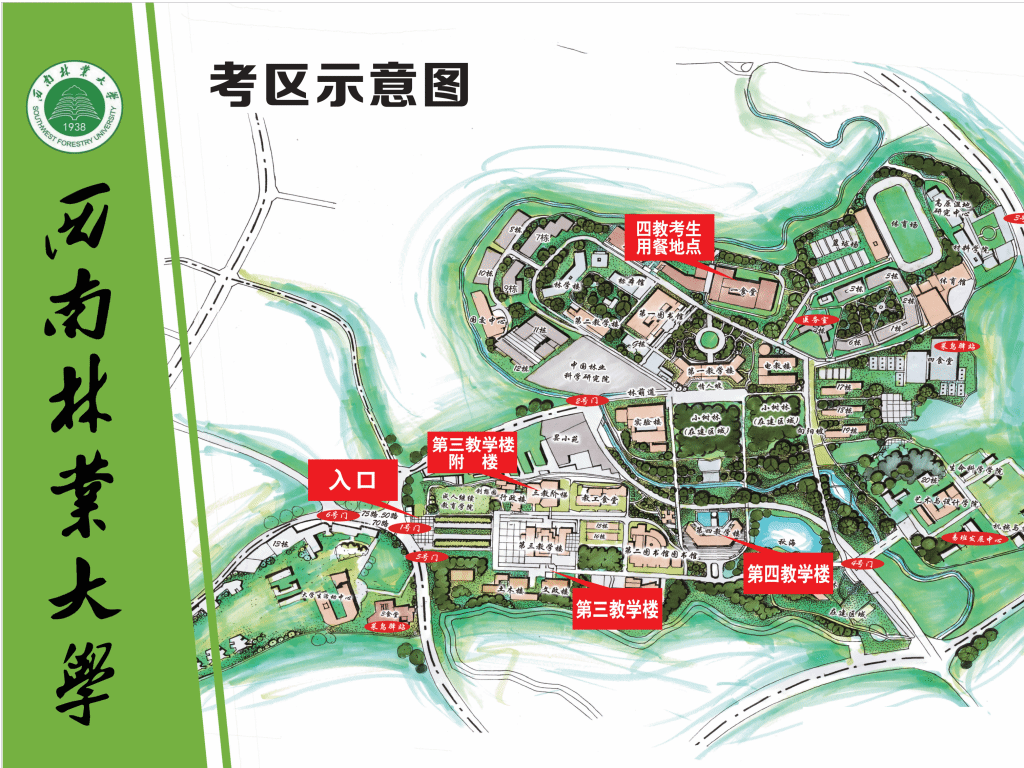 见下图(因考场编排变动,请各位考生以此通知为准),考生进入学校后必须按照指定的线路进入考区,考试完毕后按照入校的线路离开校园,不得在校内逗留。