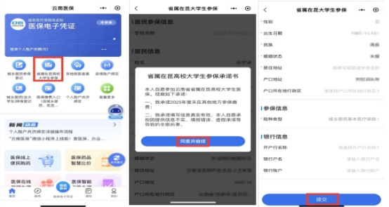 云南省内2025级新生,无需停保,直接按流程办理参保登记及缴费。